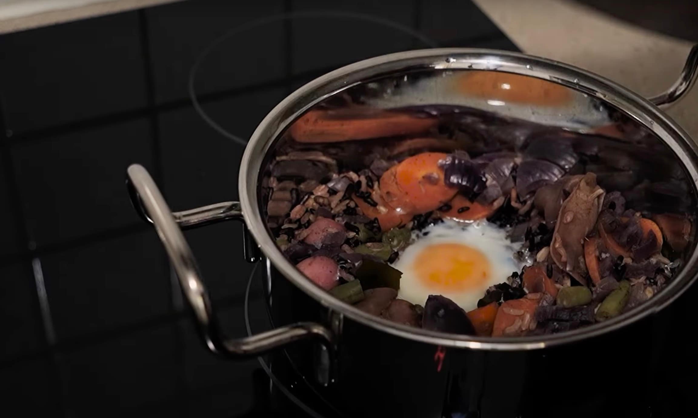 Use a heat-retaining pot and cook on low heat, making use of the residual heat. After you turn the hob off, keep the lid on throughout to hold the heat in. The residual heat will still cook the food, giving a healthy and tasty meal.